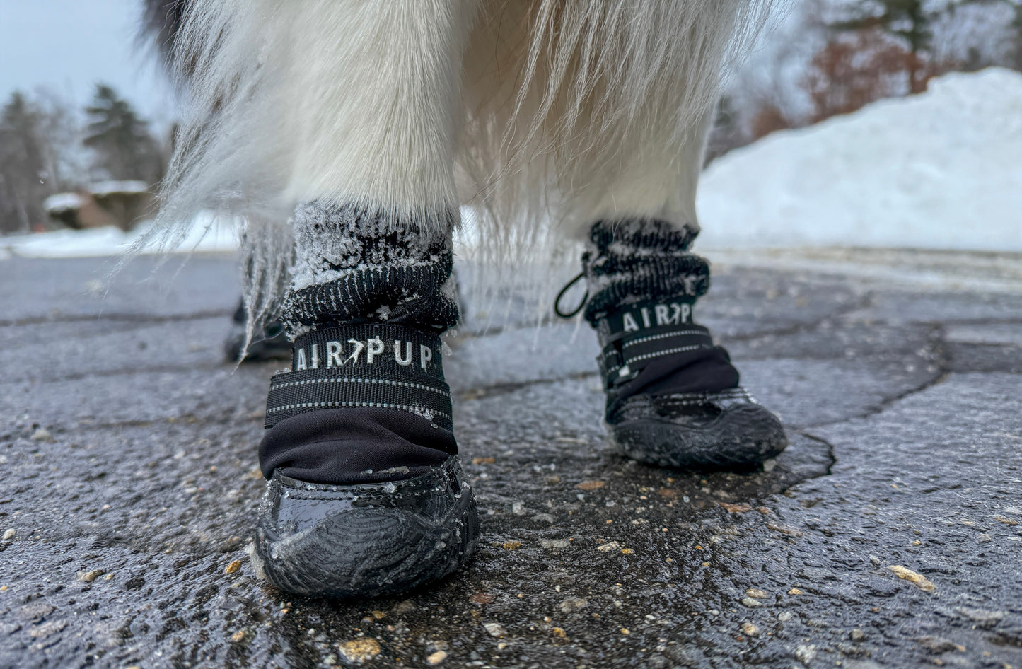 A. Like any foreign object put on a dog's body, such as a collar, harness, or coat, your dog will most likely have some type of reaction. With time and a little patience, the act of putting shoes on your dog can become as customary and familiar as putting on their collar or harness. Over time, your pup will make a positive association with his or her Air Pups and going on adventures with you.