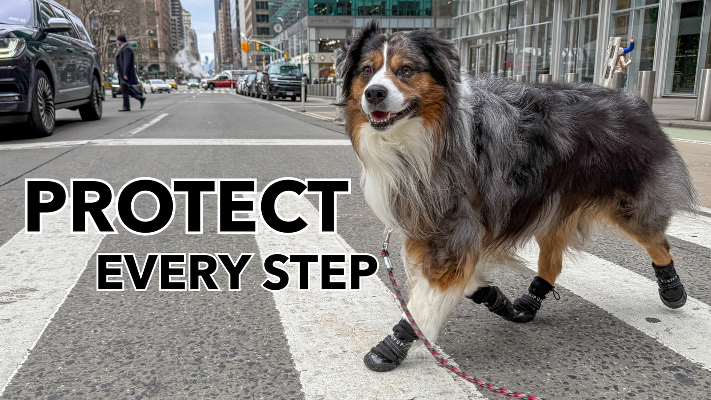 A. Dog shoes help protect your dog's paws from sharp objects, such as broken glass, and seasonal elements. In the summer, the pavement can reach scorching hot temperatures that can lead to paw burns. In the winter, the salt used to melt ice and snow can cause chemical burns to their pads.